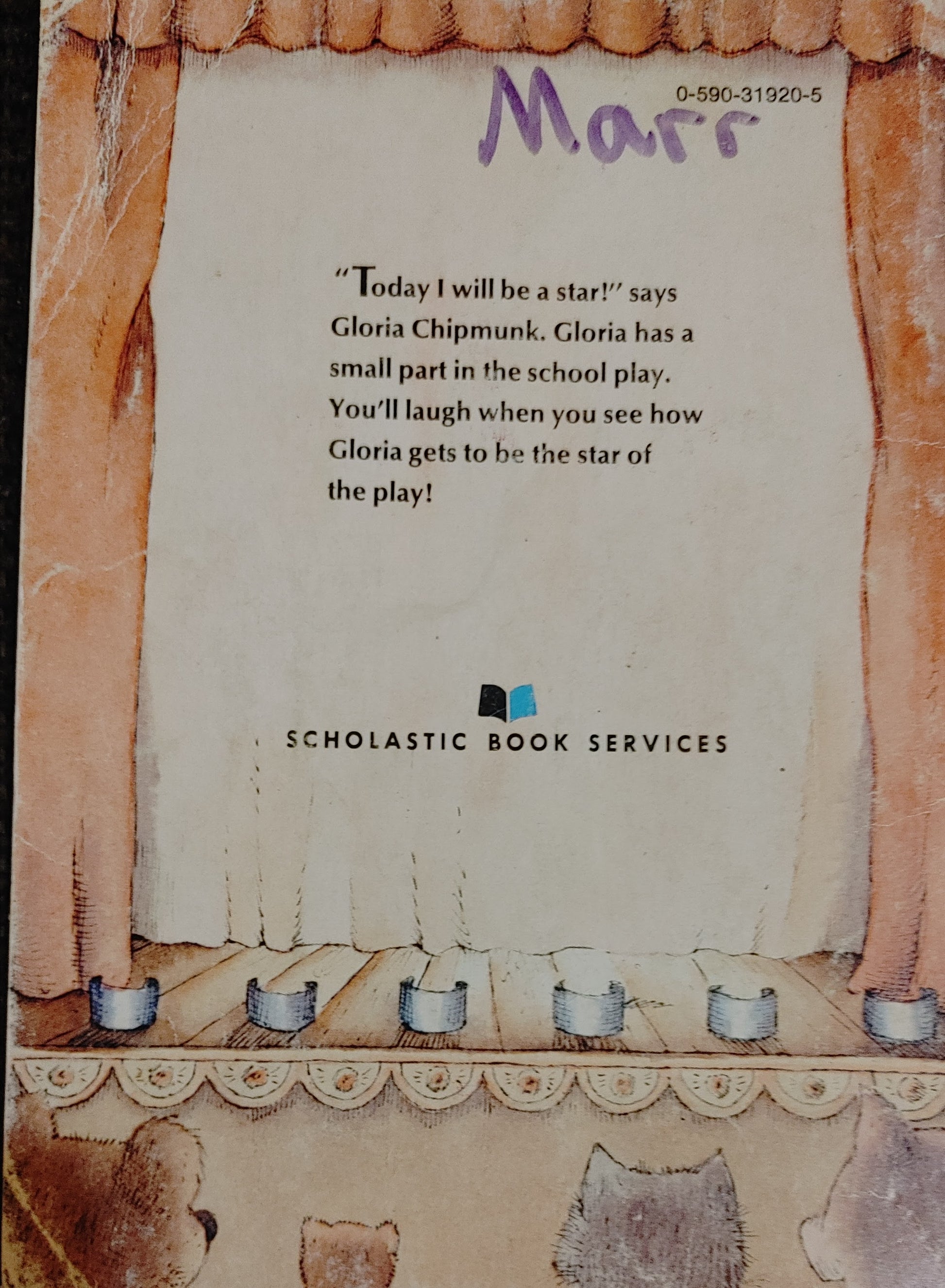 Gloria Chipmunk has a real problem to solve when she must stay home to take care of her little brother on the same day as the class play in which she has a part.