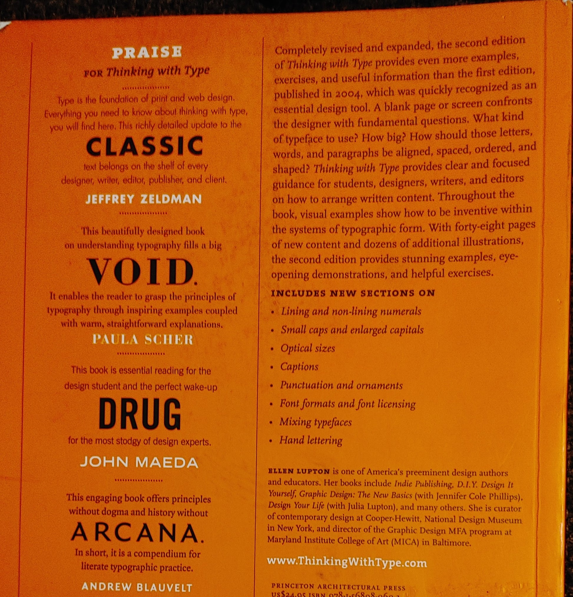 The best-selling Thinking with Type in a revised and expanded second edition: Thinking with Type is the definitive guide to using typography in visual communication. Ellen Lupton provides clear and focused guidance on how letters, words, and paragraphs should be aligned, spaced, ordered, and shaped. The book covers all typography essentials, from typefaces and type families, to kerning and tracking, to using a grid. Visual examples show how to be inventive within systems of typographic form, including what the rules are, and how to break them.